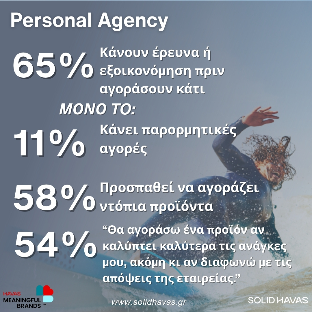 Το Personal Agency εκφράζει την αίσθηση των ανθρώπων ότι έχουν τον έλεγχο του τρόπου ζωής τους, των επιλογών τους και των προτεραιοτήτων τους. Ο καταναλωτής του 2025:
